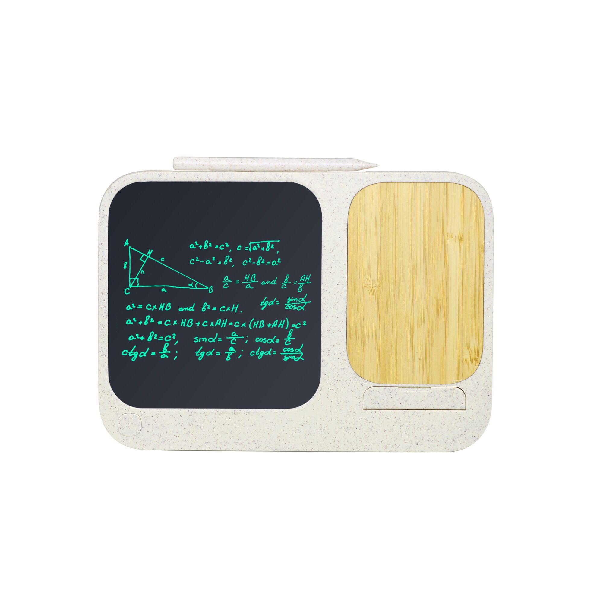 Material: Natural Wheat Straw + ABS (Eco-friendly blend) Wireless Output: 5W / 10W / 15W (Smart Fast Charge) Input Interface: Type-C Core Functions: Wireless Charging + Phone Stand + Reusable Writing Tablet Product Dimensions: 20 x 17 x 2.5 cm Ideal For: Corporate gifts, sustainable office promotions, desktop efficiency sets